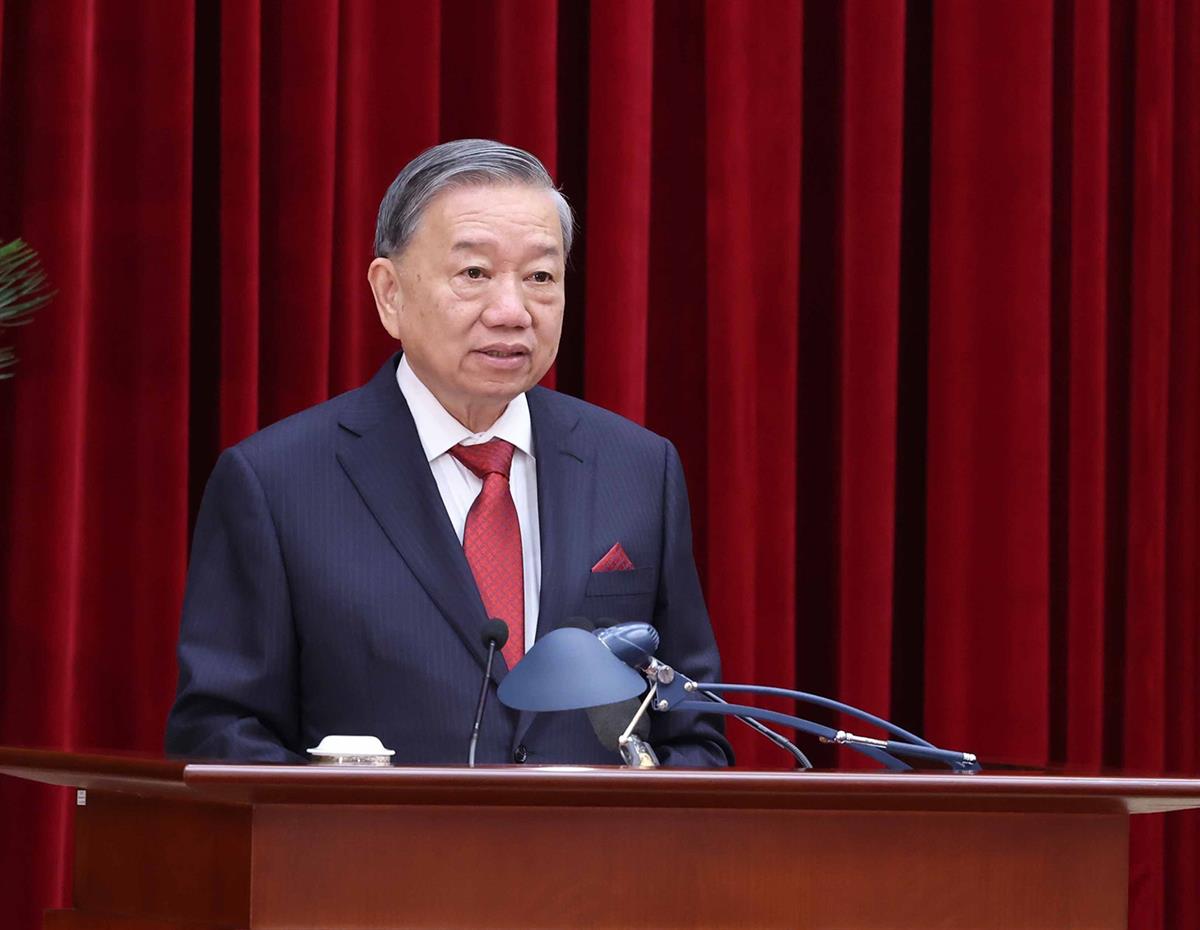 Tổng Bí thư Tô Lâm phát biểu tại Phiên khai mạc Hội nghị lần thứ 13 của Ban Chấp hành Trung ương Đảng khoá XIII _Ảnh: TTXVN