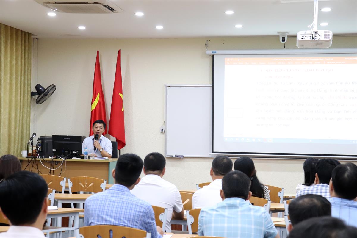 Đặc biệt, nhằm giúp học viên xác định rõ mục tiêu, động cơ học tập và rèn luyện, Học viện đã tổ chức buổi đối thoại giữa Giám đốc Học viện với học viên. Cùng với đó, đại diện Ban Quản lý đào tạo, Trung tâm Thông tin khoa học và Tạp chí Học viện đã phổ biến nội quy, quy chế học tập, đồng thời hướng dẫn khai thác, sử dụng học liệu số một cách hiệu quả.
