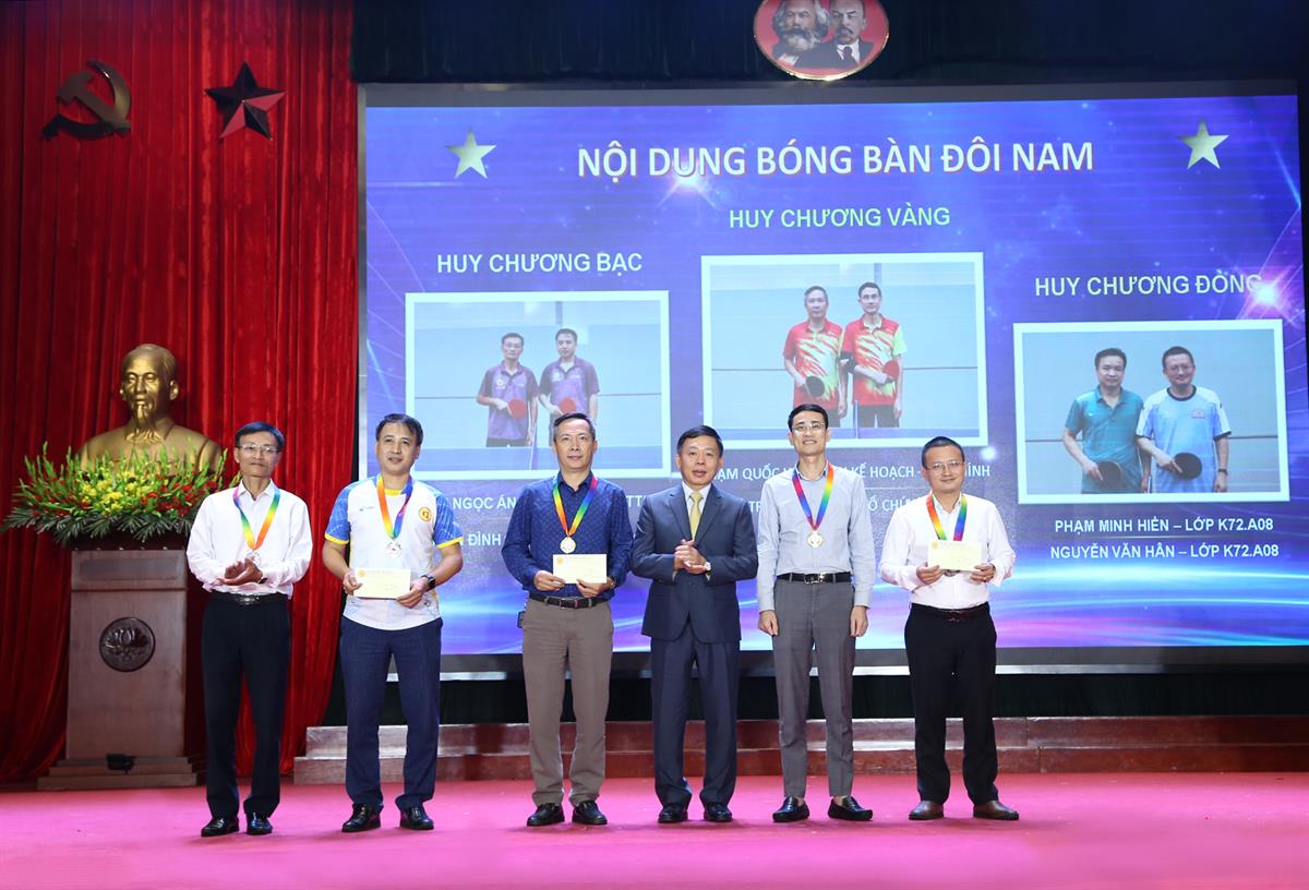 PGS,TS Nguyễn Vĩnh Thanh trao giải Nhất - Nhì - Ba nội dung bóng bàn đôi nam