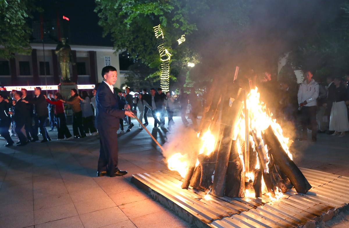 PGS,TS Nguyễn Vĩnh Thanh đốt lửa khai mạc Hội trại
