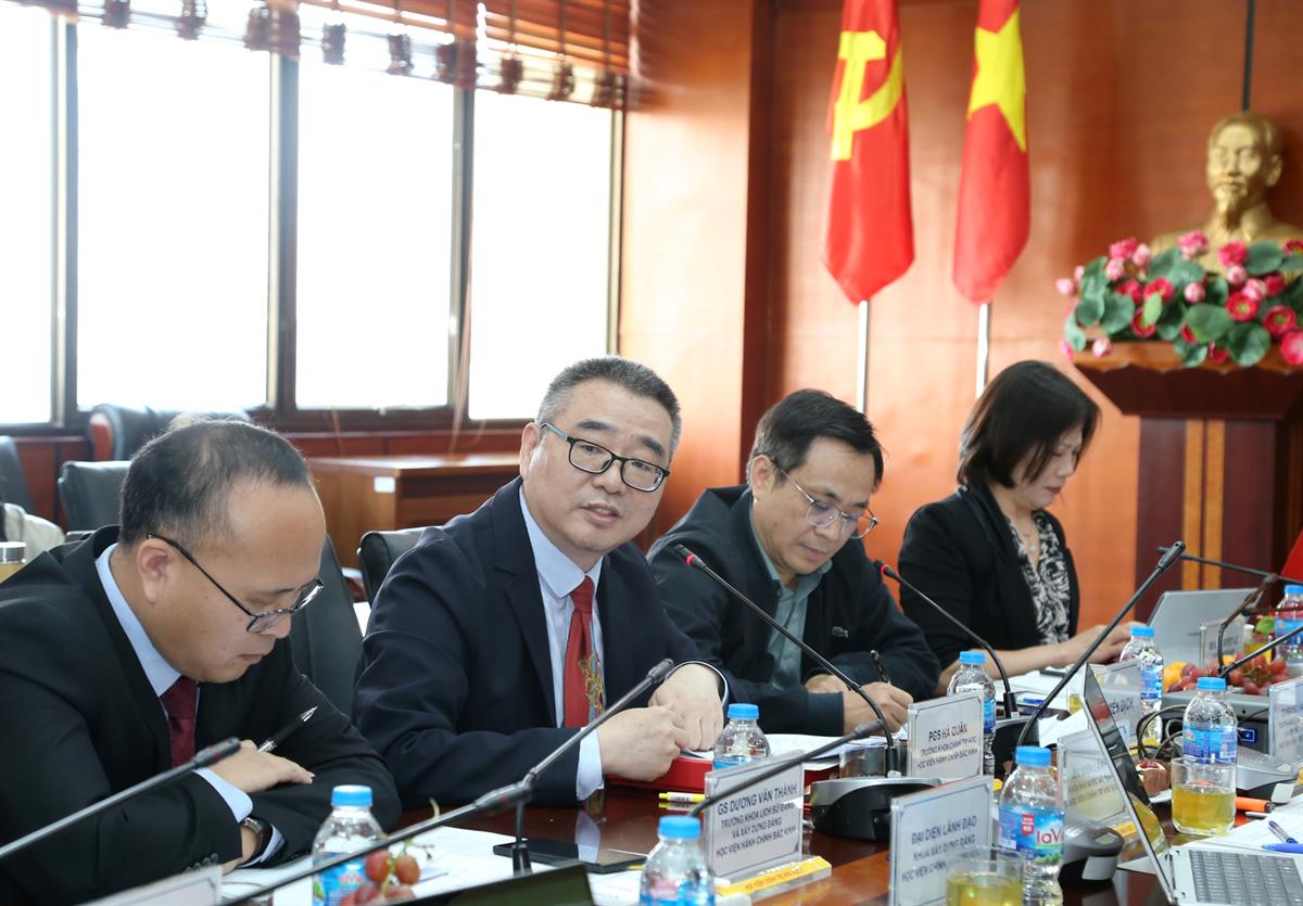 Bên cạnh đó, TS Vũ Văn Hậu cho biết, Việt Nam đang tiến hành đổi mới mạnh mẽ tổ chức bộ máy của hệ thống chính trị và tiếp tục xây dựng, hoàn thiện mô hình chính quyền địa phương hai cấp”. Những đổi mới ấy đặt ra yêu cầu cấp thiết về nâng cao phẩm chất, năng lực, chất lượng đào tạo, bồi dưỡng đội ngũ cán bộ lãnh đạo, quản lý. Trên cơ sở đó, Chương trình tọa đàm “Trao đổi hợp tác, chia sẻ kinh nghiệm của Việt Nam và Trung Quốc về nâng cao năng lực cho đội ngũ cán bộ lãnh đạo, quản lý địa phương” là dịp quan trọng để hai bên cùng trao đổi, chia sẻ những kinh nghiệm thực tiễn, qua đó chương trình góp phần tăng cường hiệu quả hợp tác trong công tác đào tạo, bồi dưỡng cán bộ giữa hai Học viện.