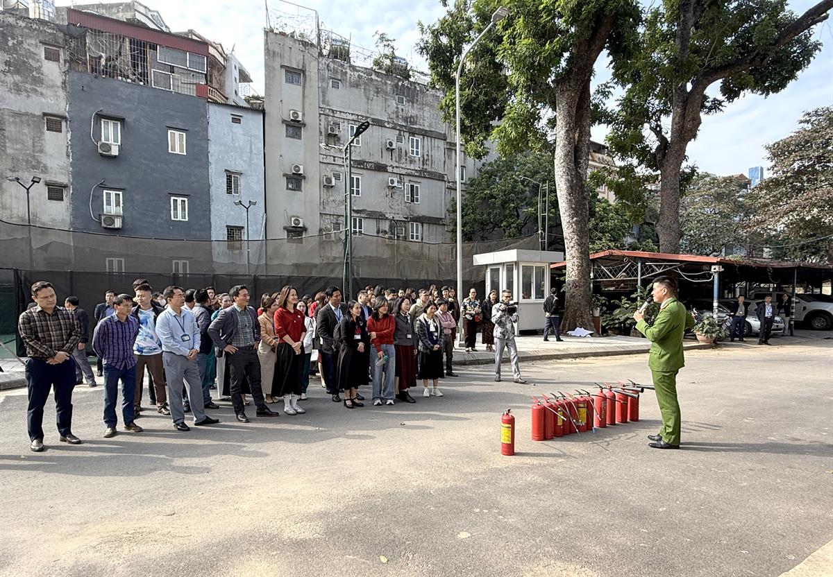 Đại úy Bùi Anh Tuấn, Đội cảnh sát Phòng cháy, chữa cháy và cứu nạn, cứu hộ số 13 hướng dẫn nghiệp vụ cho viên chức, người lao động tại Học viện Chính trị khu vực I