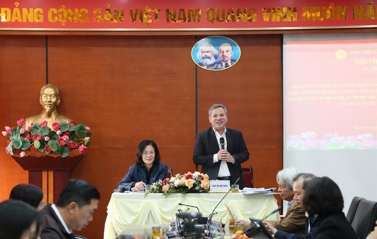 Trình bày Báo cáo đề dẫn Hội thảo, TS Vũ Văn Hậu, Phó Giám đốc Học viện cho biết: Trong bối cảnh toàn cầu hóa và cạnh tranh ngày càng gay gắt về hình ảnh, thương hiệu và sức hấp dẫn điểm đến, các quốc gia và địa phương đứng trước yêu cầu cấp thiết phải kiến tạo bản sắc riêng nhằm nâng cao năng lực cạnh tranh và phát triển bền vững. Thực tiễn cho thấy, các sự kiện văn hóa, nghệ thuật, đặc biệt là những lễ hội đương đại được tổ chức chuyên nghiệp và sáng tạo, đang nổi lên như một nguồn lực chiến lược, có khả năng kết nối di sản với hiện đại, chuyển hóa bản sắc văn hóa thành giá trị trải nghiệm, tạo hiệu ứng truyền thông lan tỏa và thúc đẩy phát triển kinh tế, xã hội.