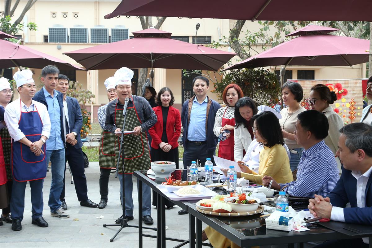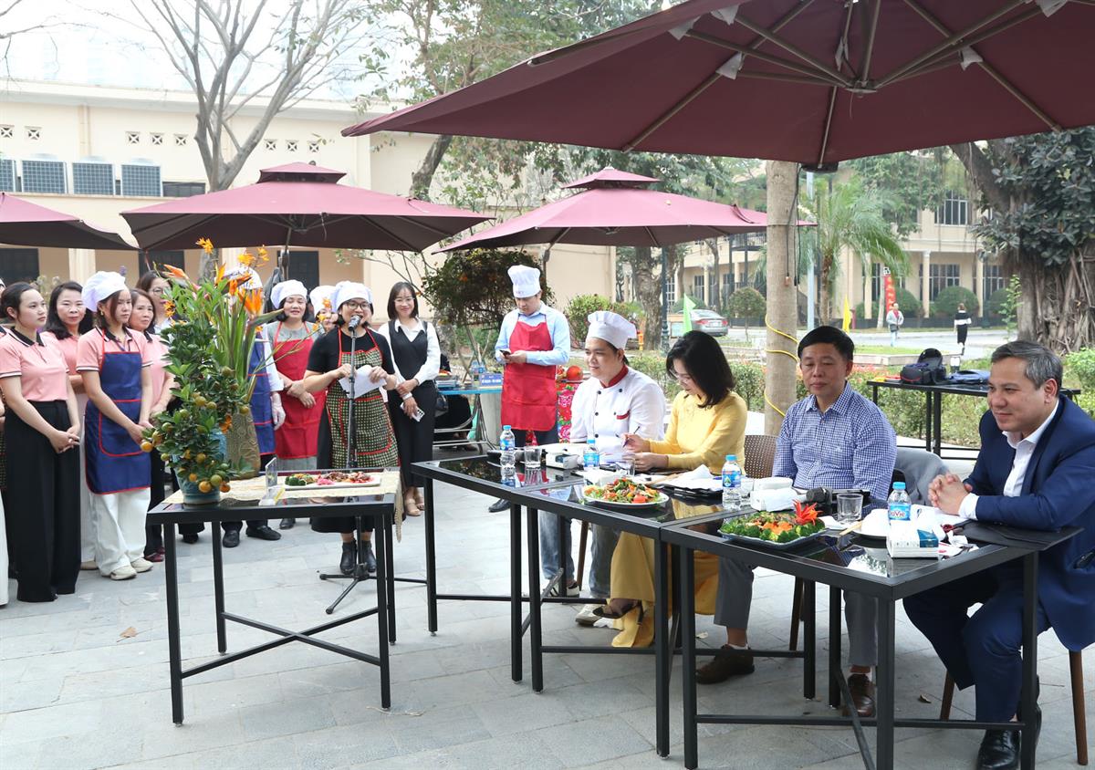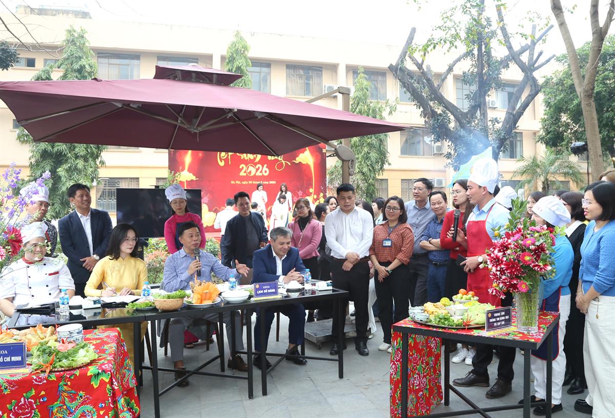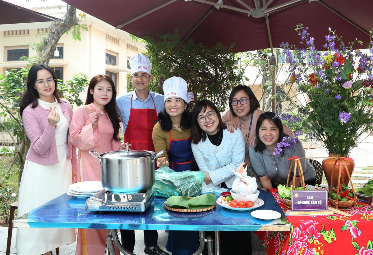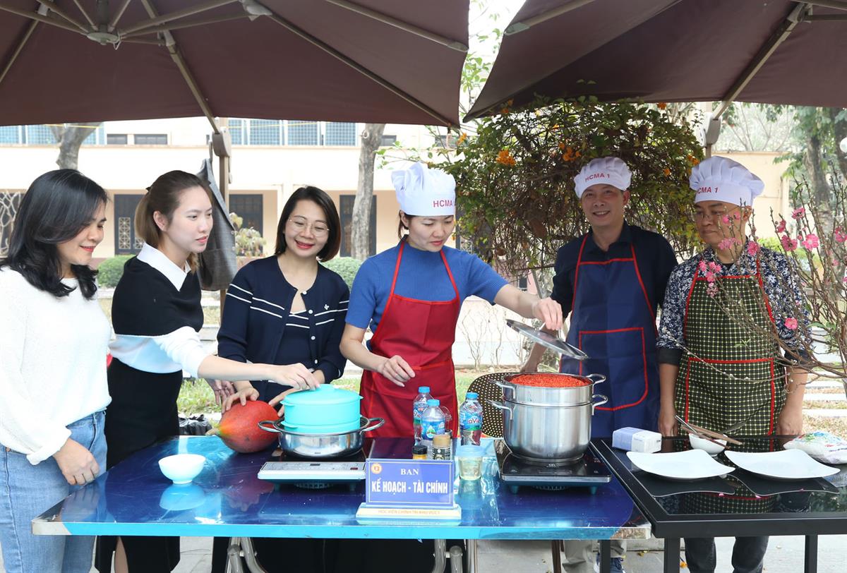 Điểm nhấn của chương trình là Hội thi nấu ăn với chủ đề “Mâm cỗ truyền thống ngày Tết”. Các đội thi đã chuẩn bị và trình bày nhiều món ăn mang đậm hương vị Tết cổ truyền như xôi gấc, gà luộc, canh bóng mọc, nem rán, thịt bò xào, thịt kho trứng… Những mâm cỗ được chăm chút kỹ lưỡng về hình thức, bảo đảm yêu cầu về vệ sinh an toàn thực phẩm và cân đối dinh dưỡng; đồng thời thể hiện những giá trị văn hóa truyền thống, phản ánh ý nghĩa sum họp gia đình và gửi gắm ước vọng về một năm mới đủ đầy, may mắn, an khang.
