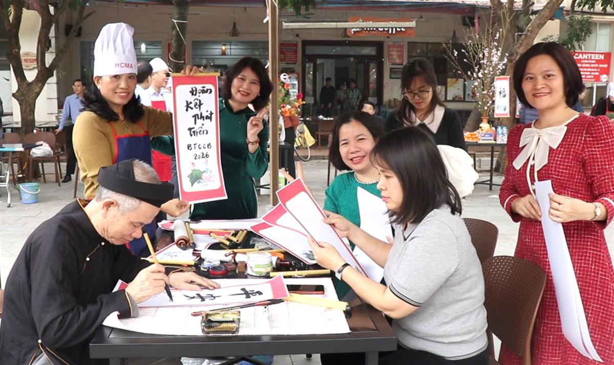 Bên cạnh đó, chuỗi trò chơi dân gian như cờ tướng, bắt vịt, chơi chuyền, ném tiêu đã tái hiện sinh động không gian Tết xưa của làng quê Việt Nam. Những tiếng cười rộn rã, những tràng vỗ tay cổ vũ đã làm sống dậy ký ức tuổi thơ trong lòng nhiều người tham dự. Mỗi trò chơi là một mảnh ghép của văn hóa dân gian, góp phần nuôi dưỡng tinh thần cộng đồng, khơi dậy sự gắn bó và sẻ chia giữa các đơn vị trong Học viện.