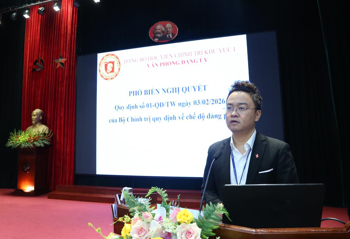 Theo chương trình Hội nghị, PGS,TS Nguyễn Vĩnh Thanh, Bí thư Đảng ủy, Giám đốc Học viện đã phổ biến Kế hoạch số 129-KH/HVCTQG của Giám đốc Học viện Chính trị quốc gia Hồ Chí Minh về triển khai một số nhiệm vụ trọng tâm năm 2026, trong đó xác định rõ các nhiệm vụ cụ thể đối với Học viện Chính trị khu vực I. Cũng tại Hội nghị, Đồng chí Bí thư Đảng ủy, Giám đốc Học viện đã phổ biến, quán triệt Nghị quyết tháng 2 năm 2026 và giao ban đối thoại với viên chức, người lao động nhằm kịp thời nắm bắt tình hình, tháo gỡ khó khăn và định hướng triển khai nhiệm vụ trong thời gian tới.