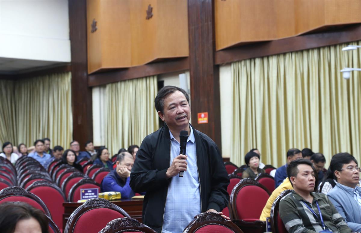 ThS Bùi Giang Nam, Giảng viên chính khoa Chính trị và Quan hệ quốc tế phát biểu tại Hội nghị
