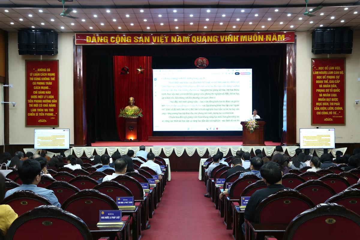 Tại Hội nghị, các văn bản quan trọng của Đảng và Nhà nước đã được phổ biến, quán triệt nhằm bảo đảm tính đồng bộ trong nhận thức và tổ chức thực hiện. Theo đó, ThS Nguyễn Tiến Dũng, Phó Trưởng ban Tổ chức cán bộ đã giới thiệu nội dung và điểm mới trong Thông tư số 03/2026/TT-BGDĐT ngày 30/01/2026 của Bộ Giáo dục và Đào tạo về việc ban hành Quy định quy tắc ứng xử của nhà giáo, qua đó làm rõ những chuẩn mực cần tuân thủ trong hoạt động nghề nghiệp. Ngay sau nội dung này, TS Lê Sỹ Thọ, Phó Chánh Văn phòng Đảng ủy, Trưởng ban Kế hoạch - Tài chính đã phổ biến Quy định số 01-QĐ/TW ngày 03/02/2026 của Bộ Chính trị về chế độ đảng phí, đồng thời quán triệt Quy định số 06-QĐ/TW ngày 09/02/2026 của Ban Bí thư về quản lý và sử dụng thẻ đảng viên, góp phần tăng cường tính nghiêm túc, chặt chẽ trong công tác xây dựng Đảng.