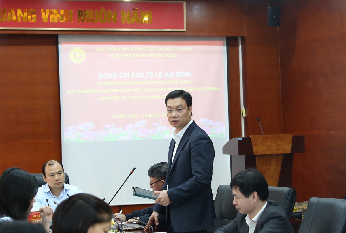 Phát biểu Kết luận tại buổi làm việc, Đồng chí PGS,TS Lê Hải Bình Ủy viên Ban Chấp hành Trung ương Đảng, Phó Giám đốc Thường trực Học viện Chính trị quốc gia Hồ Chí Minh ghi nhận và đánh giá cao những kết quả nổi bật mà Học viện đã đạt được trong thời gian qua. Đồng chí khẳng định, dưới sự lãnh đạo của Đảng ủy, Ban Giám đốc, Học viện Chính trị khu vực I đã kế thừa và phát huy truyền thống, từng bước phát triển vững chắc, đáp ứng yêu cầu nhiệm vụ do Học viện Chính trị quốc gia Hồ Chí Minh giao.
