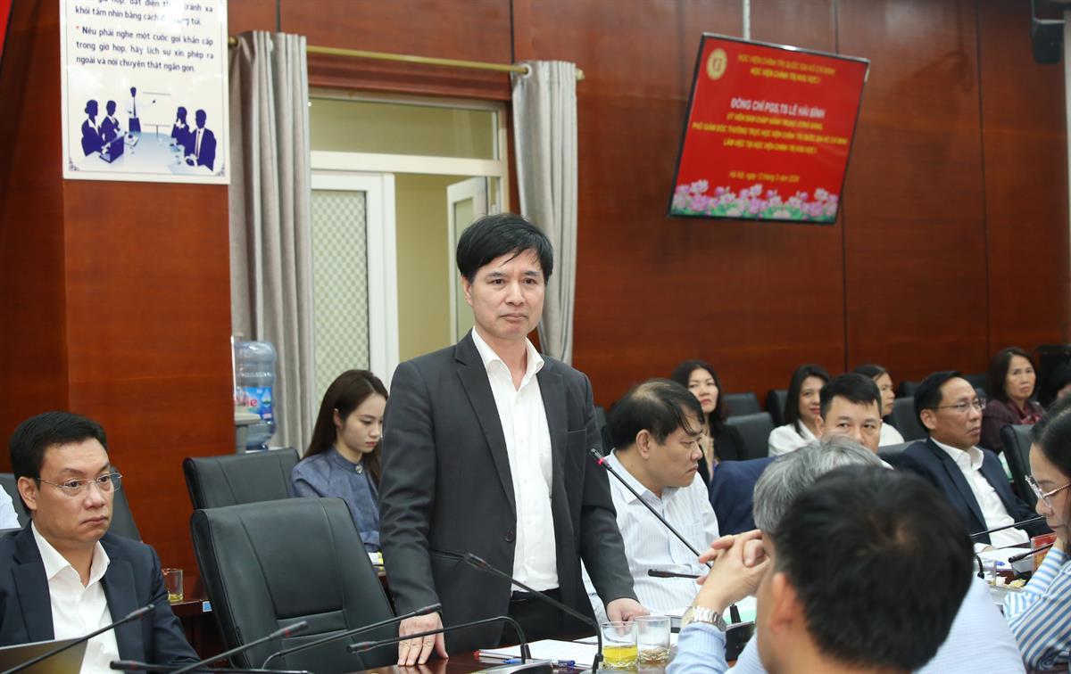Đồng chí PGS,TS Lê Hải Bình, Ủy viên Ban Chấp hành Trung ương Đảng, Phó Giám đốc Thường trực Học việnChính trị quốc gia Hồ Chí Minh phát biểu tại buổi làm việc