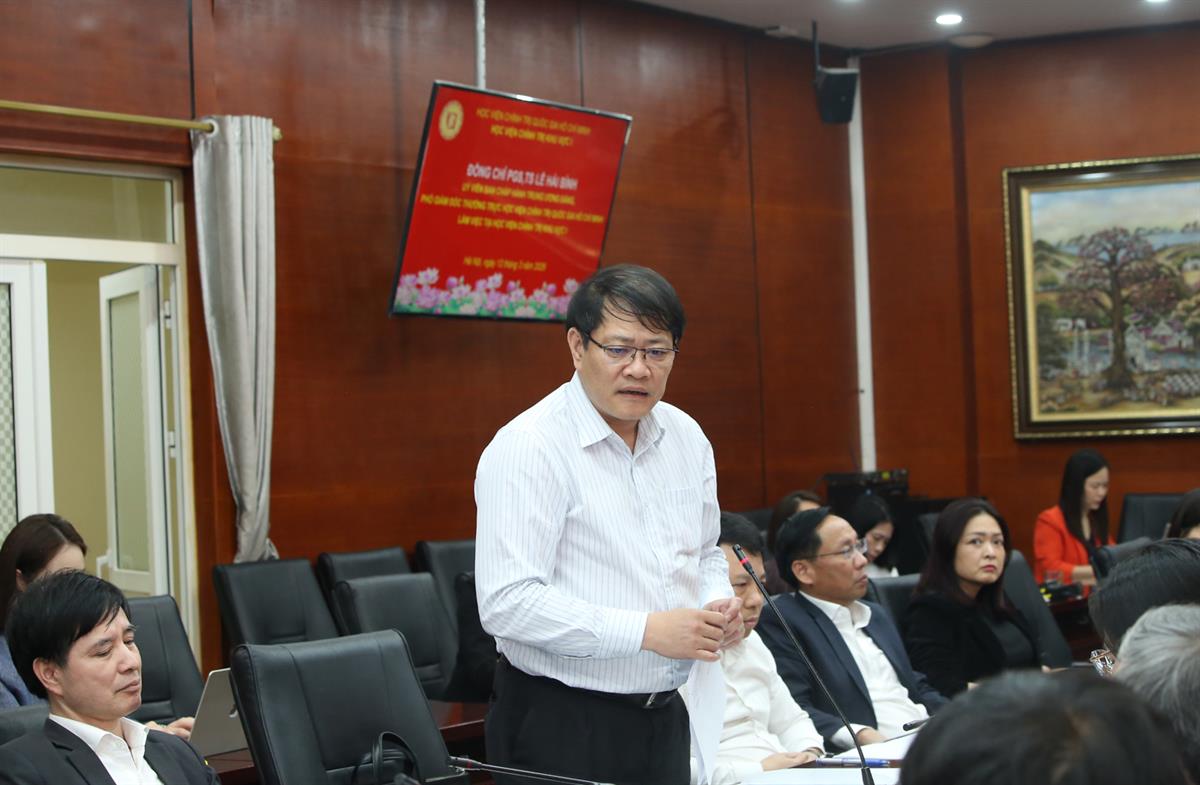 PGS,TS Đinh Ngọc Giang, Vụ trưởng Vụ Tổ chức cán bộ, Học viện Chính trị quốc gia Hồ Chí Minh phát biểu tại buổi làm việc