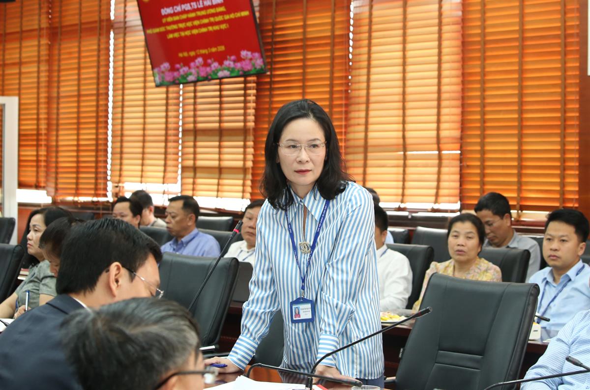 TS Phạm Thị Ngọc Dung, Phó Giám đốc Học viện Chính trị khu vực I phát biểu tại buổi làm việc