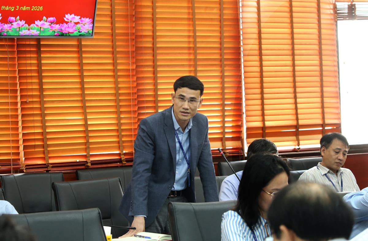 TS Vũ Trường Giang, Trưởng khoa Lịch sử Đảng, Học viện Chính trị khu vực I phát biểu tại buổi làm việc