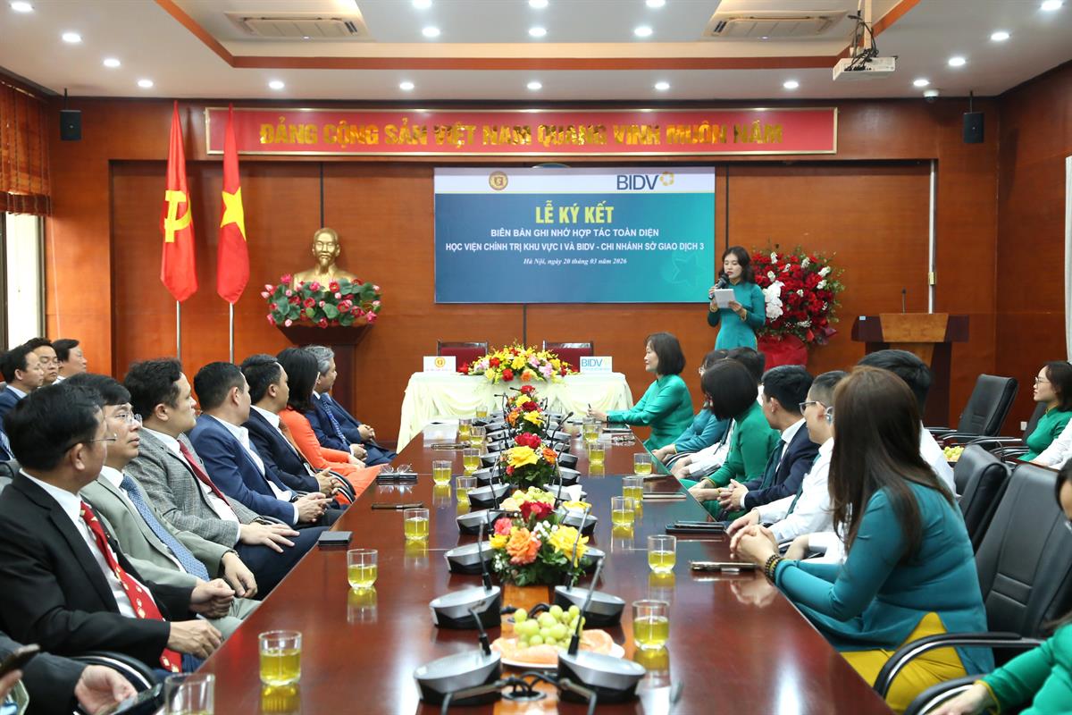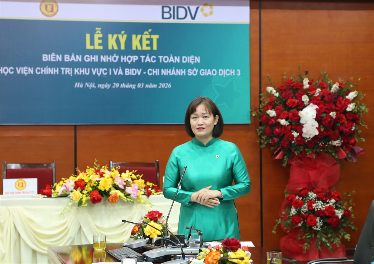 Lễ Ký kết Biên bản ghi nhớ hợp tác giữa Học viện Chính trị khu vực I và Chi nhánh Sở Giao dịch 3, Ngân hàng Thương mại cổ phần Đầu tư và Phát triển Việt Nam