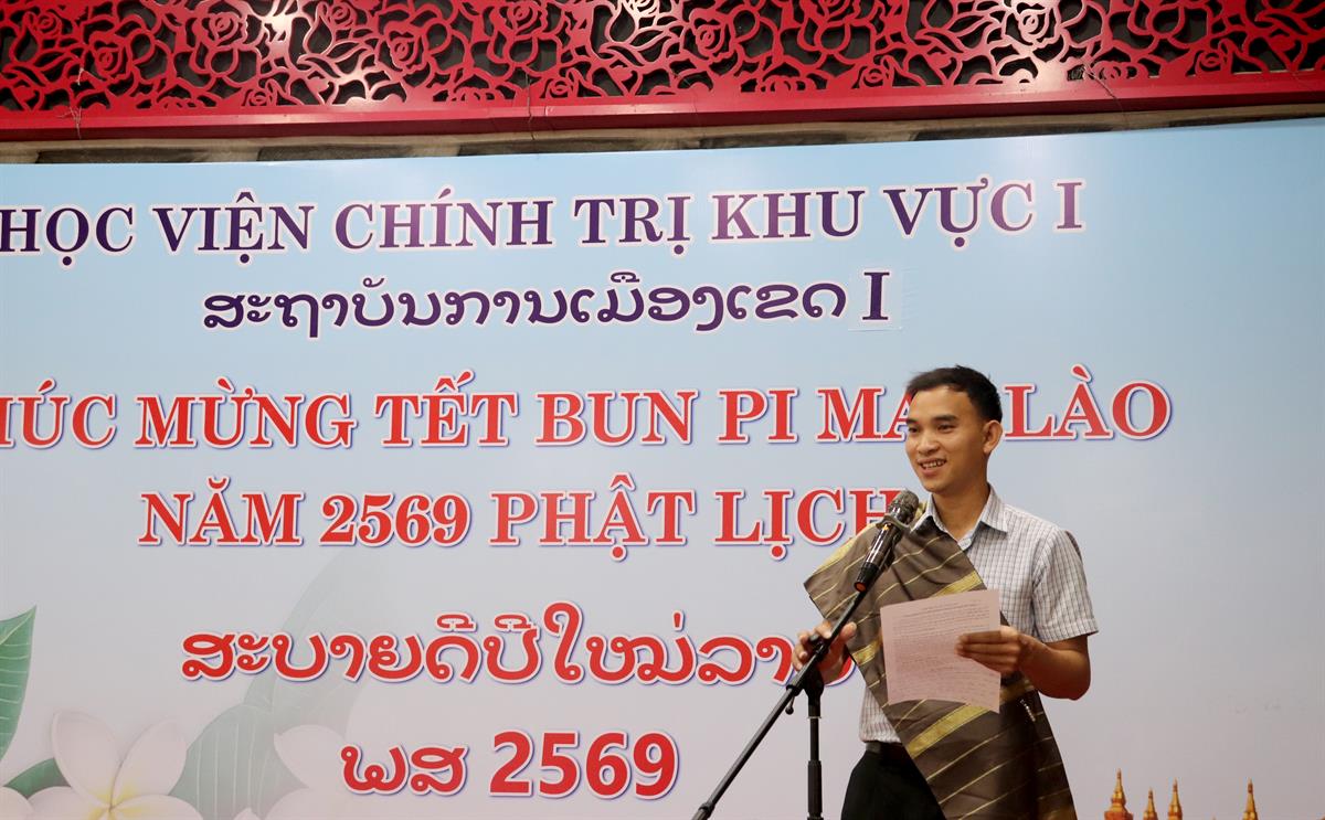 Tại buổi Lễ, học viên Thay Thepphithak, Bí thư chi bộ, Trưởng đoàn lưu học sinh Lào đang học tập tại Học viện Chính trị khu vực I đã giới thiệu về lịch sử Tết cổ truyền Bun Pi May. Theo đó, Tết cổ truyền Bun Pi May của Lào, hay còn gọi là Tết té nước, để cầu may, bình yên cho cả năm. Đây là lễ hội năm mới cổ truyền lớn nhất của Lào, diễn ra từ ngày 14-16/4 dương lịch hằng năm. Mang ý nghĩa gột rửa điều xấu, cầu may mắn và hạnh phúc, người dân thường té nước, buộc chỉ cổ tay và đi chùa lễ Phật. Đây là nét văn hóa đặc sắc mang đậm tính cộng đồng và Phật giáo của đất nước Triệu Voi. Những phong tục được tổ chức trong dịp Tết cổ truyền Bun Pi May mang ý nghĩa đem lại sự mát mẻ, phồn vinh, ấm no, hạnh phúc, đất nước thanh bình, thịnh vượng.