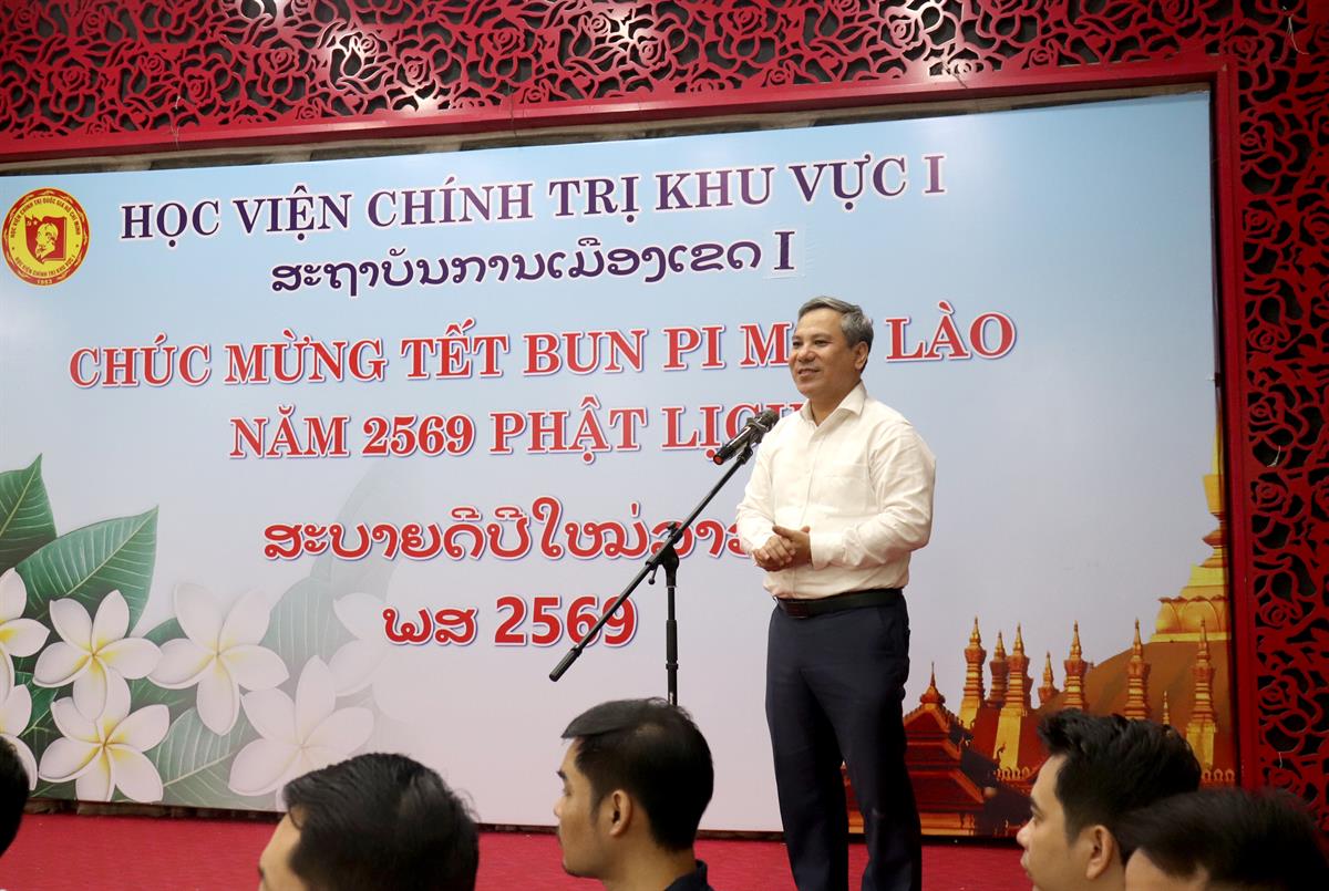 Thay mặt Đảng ủy, Ban Giám đốc, TS Vũ Văn Hậu, Phó Giám đốc điều hành Học viện gửi lời chúc mừng và chia vui cùng toàn thể các học viên Lào đang học tập tại các trường Đại học trên địa bàn Hà Nội vào dịp tết cổ truyền Bun Pi May đặc biệt quan trọng và đầy ý nghĩa. Đồng chí nhấn mạnh: Tết cổ truyền Bun Pi May Lào là hoạt động được tổ chức nhằm tạo không khí vui tươi, ấm áp, là cầu nối thiết thực giữa Học viện và lưu học sinh Lào bồi đắp tình gắn bó keo sơn lâu dài với mối quan hệ hữu nghị thắm thiết, đoàn kết đặc biệt, toàn diện giữa Việt Nam - Lào.