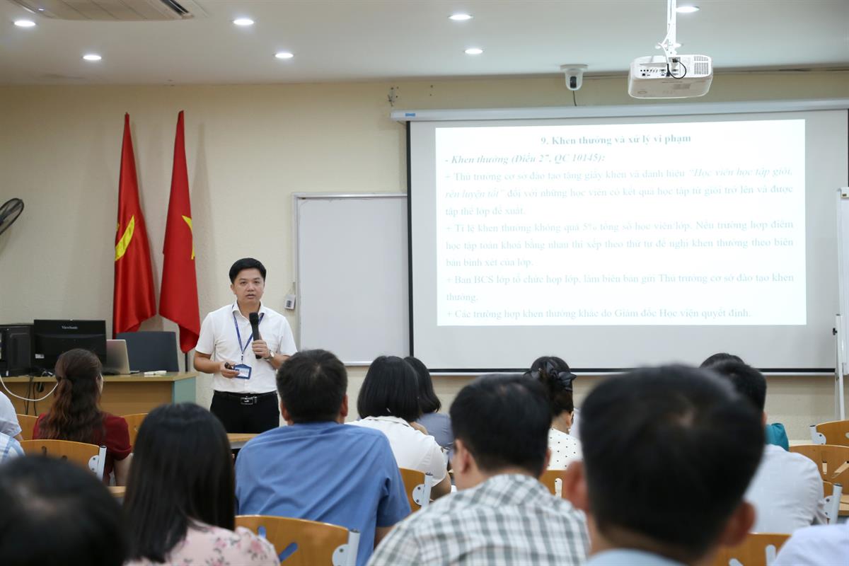 Để thực hiện tốt kế hoạch học tập và rèn luyện, từ ngày 24-25/9/2025, học viên được trao đổi, đối thoại trực tiếp với PGS,TS Nguyễn Vĩnh Thanh, Giám đốc, Học viện về chương trình, mục tiêu đào tạo, phương pháp học tập cơ chế phối hợp trong quá trình rèn luyện. Bên cạnh đó, học viên được nghe phổ biến nội quy, quy chế đào tạo, Hướng dẫn sử dụng phầm mềm Microsoft Teams, phần mềm Thư viện và cách thức khai thác học liệu tại Học viện.
