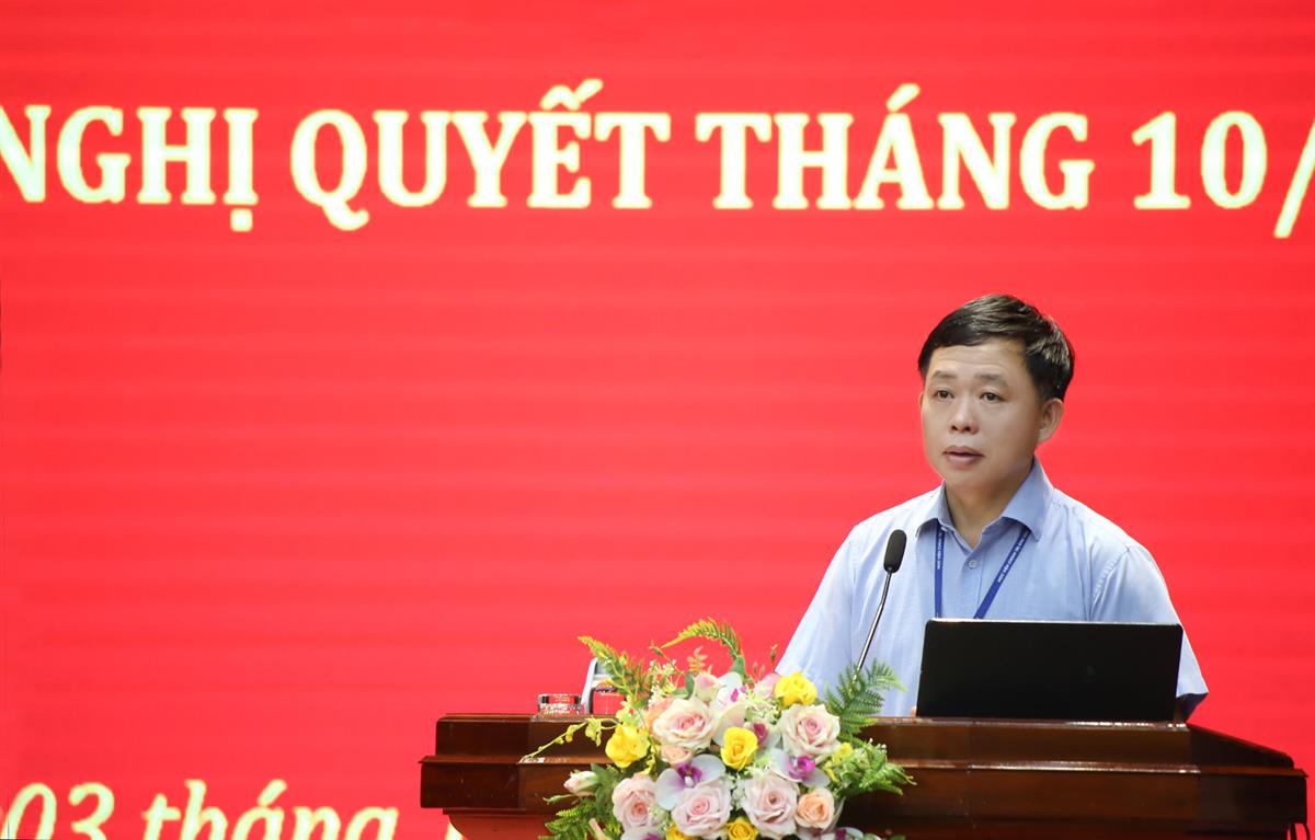 Phổ biến Nghị quyết Đảng ủy và giao ban đối thoại với viên chức, người lao động, PGS,TS Nguyễn Vĩnh Thanh, Bí thư Đảng ủy, Giám đốc Học viện đã nhấn mạnh một số nhiệm vụ trọng tâm cần triển khai trong tháng 10/2025. Đồng chí yêu cầu các khoa chuyên môn tiếp tục hoàn thiện đề thi hết môn, đề thi tốt nghiệp chương trình Cao cấp lý luận chính trị; đồng thời tổ chức các hoạt động dự giờ cấp Học viện nhằm nâng cao chất lượng giảng dạy; tăng cường kỷ luật, kỷ cương đối với học viên trong quá trình học tập và rèn luyện.