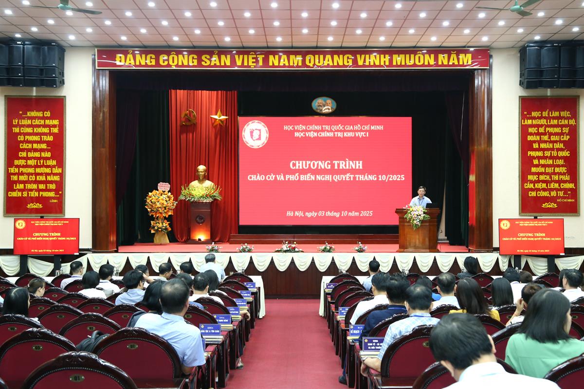 Sáng 03/10/2025, Học viện Chính trị khu vực I tổ chức chương trình Chào cờ và phổ biến Nghị quyết tháng 10/2025. PGS,TS Nguyễn Vĩnh Thanh, Bí thư Đảng ủy, Giám đốc Học viện chủ trì Hội nghị.