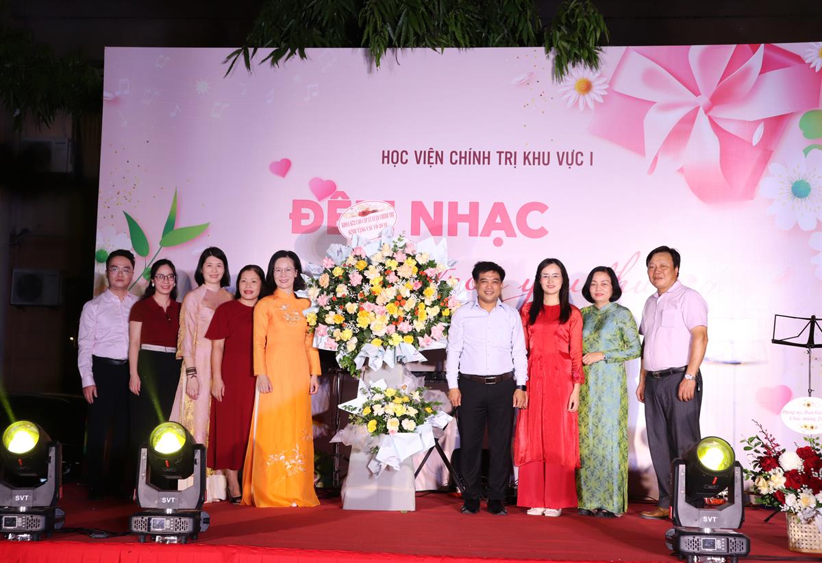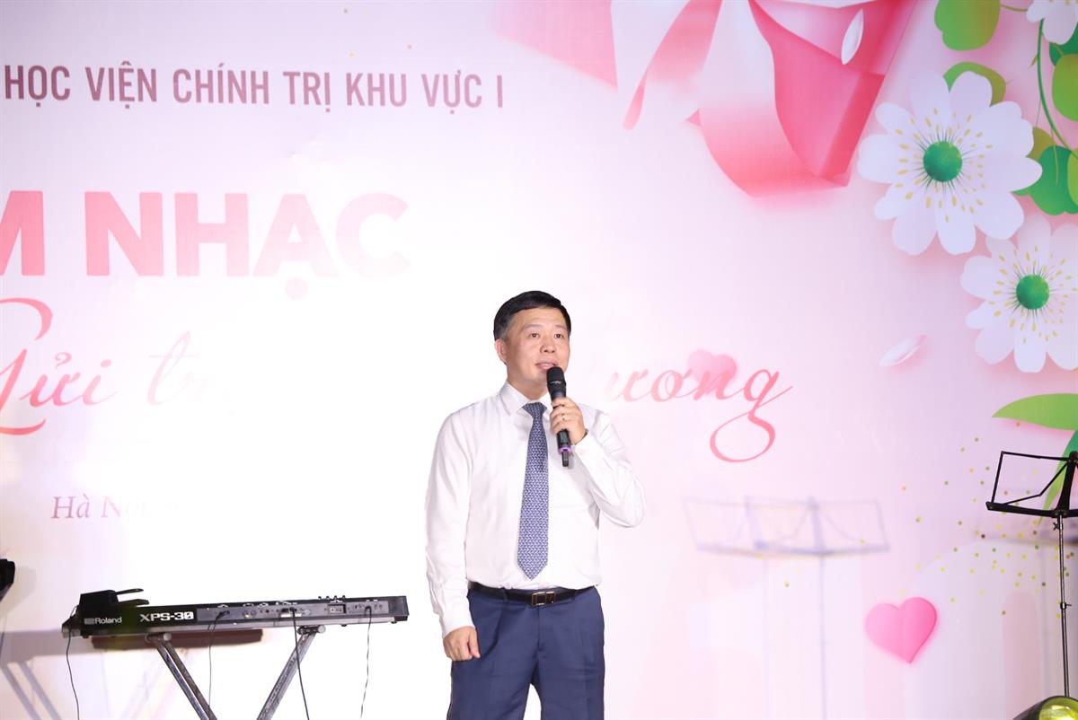 Thay mặt Đảng ủy, Ban Giám đốc, đồng chí đã gửi lời chúc tốt đẹp đến toàn thể nữ viên chức, người lao động, nữ học viên đang học tập tại Học viện, đồng thời tặng hoa chúc mừng đại diện Ban Vì sự tiến bộ của phụ nữ Học viện.
