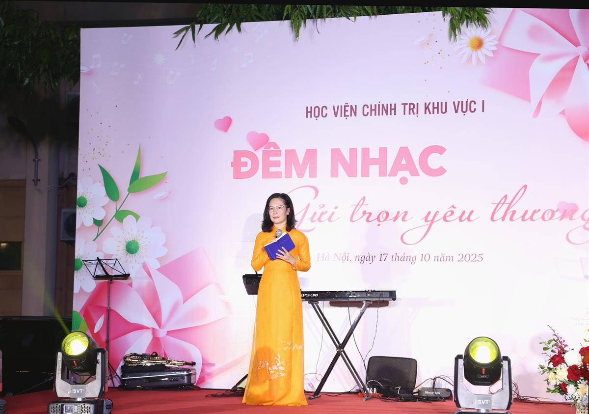 Đêm nhạc với chủ đề “Gửi trọn yêu thương” đã mang đến một không gian âm nhạc đầy cảm xúc. Các tiết mục được dàn dựng và biểu diễn bởi viên chức, người lao động và học viên các lớp đã khắc họa sinh động hình ảnh người phụ nữ Việt Nam. Những lời ca, bản nhạc không chỉ ca ngợi tình yêu thương, sự hy sinh thầm lặng của người mẹ, người vợ trong chiến tranh, gian khó mà còn tôn vinh ý chí vươn lên của phụ nữ Việt Nam trong thời kỳ mới. Đêm nhạc đã để lại nhiều ấn tượng sâu sắc, lan tỏa thông điệp về tình yêu, sự sẻ chia và tinh thần đoàn kết trong toàn Học viện.