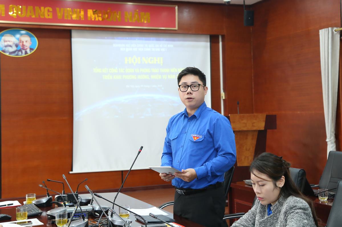 Phát biểu tại Hội nghị, PGS, TS Nguyễn Vĩnh Thanh, Bí thư Đảng ủy, Giám đốc Học viện, yêu cầu mỗi đoàn viên, thanh niên chủ động xây dựng kế hoạch công tác cá nhân bám sát chức năng, nhiệm vụ được giao và sự chỉ đạo của lãnh đạo, tập trung vào các nội dung thiết thực, hiệu quả. Đồng chí nhấn mạnh, Đoàn Thanh niên cần có sự đổi mới mạnh mẽ trong phương thức hoạt động, gắn phong trào với nhiệm vụ chuyên môn và nhiệm vụ chính trị của Học viện, tránh hình thức. Bên cạnh đó, Đồng chí đề nghị nghiên cứu điều chỉnh cơ cấu chi đoàn theo hướng tăng cường sự kết nối giữa khối giảng dạy và khối phòng, ban chức năng nhằm nâng cao hiệu quả phối hợp trong công việc. Đồng thời, mỗi đoàn viên cần thường xuyên nghiên cứu, nắm vững hệ thống chính trị, các chủ trương, đường lối của Đảng và quy định chuyên môn; trong đó, việc bảo vệ nền tảng tư tưởng của Đảng phải được thể hiện bằng những hành động cụ thể, thiết thực. Trên tinh thần đó, Đoàn Thanh niên tiếp tục thực hiện nghiêm các quy định, điều lệ và sự chỉ đạo của cấp trên, góp phần thúc đẩy sự phát triển của Học viện.