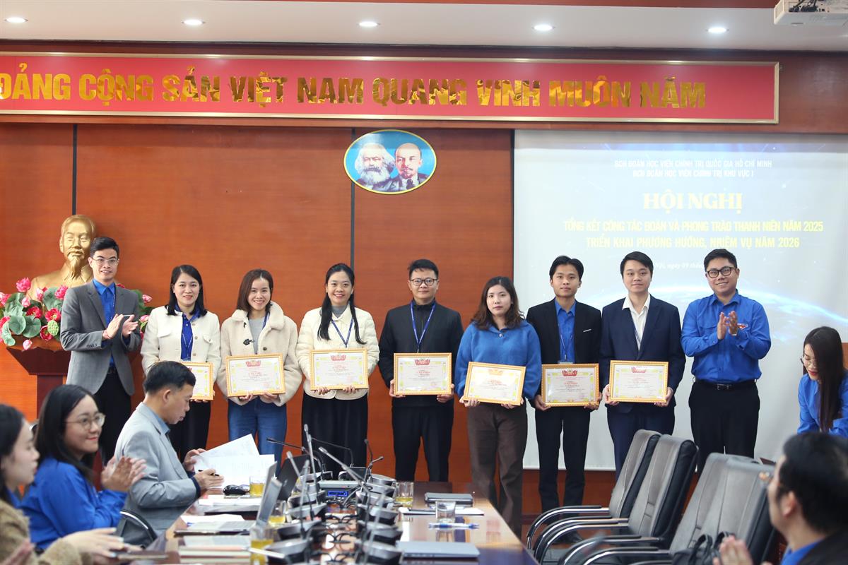 Tại Hội nghị, đồng chí Lương Quang Huy, Ủy viên Ban Chấp hành Đoàn các cơ quan Đảng Trung ương, chuyên trách Đoàn Thanh niên Học viện Chính trị quốc gia Hồ Chí Minh và ThS Lê Quang Hiển, Bí thư Đoàn Thanh niên Học viện Chính trị khu vực I đã trao Giấy khen cho đoàn viên thanh niên có thành tích xuất sắc trong công tác Đoàn, phong trào thanh niên năm 2025.