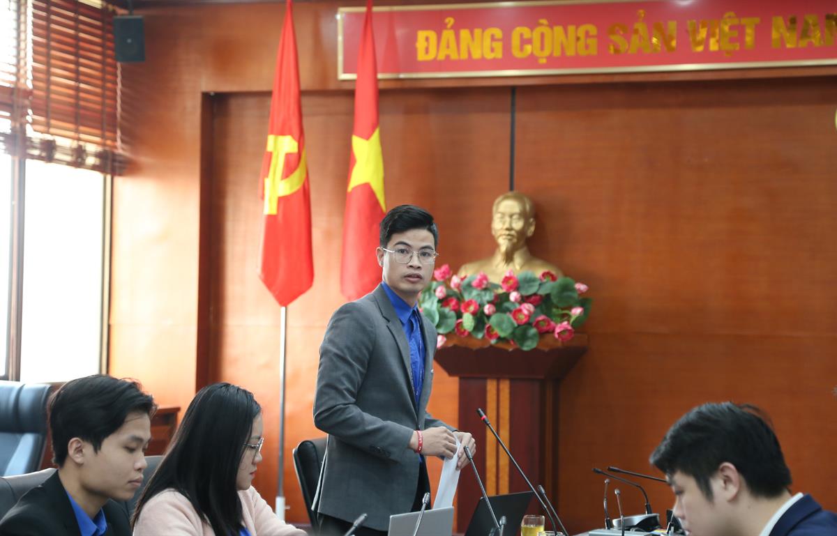 Đồng chí Lương Quang Huy, Ủy viên Ban Chấp hành Đoàn các cơ quan Đảng Trung ương phát biểu tại Hội nghị