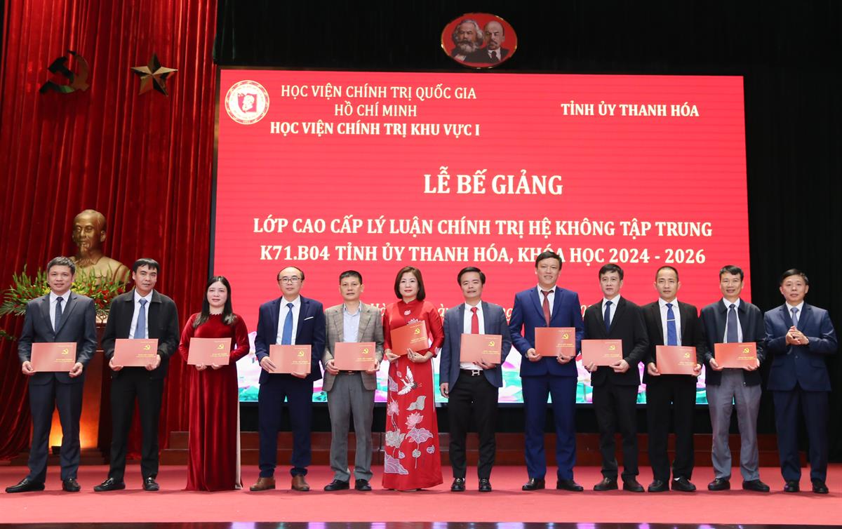 Dự buổi Lễ có PGS,TS Nguyễn Vĩnh Thanh, Bí thư Đảng ủy, Giám đốc Học viện; TS Thịnh Văn Khoa, Phó Hiệu trưởng Trường Chính trị tỉnh Thanh Hóa; các đồng chí trong Ban chấp hành Đảng bộ, lãnh đạo các đơn vị và 58 học viên lớp Cao cấp lý luận chính trị hệ không tập trung K71.B04 Tỉnh ủy Thanh Hóa, khóa học 2024-2026.