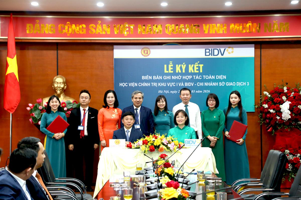 Lễ Ký kết Biên bản ghi nhớ hợp tác giữa Học viện Chính trị khu vực I và Chi nhánh Sở Giao dịch 3, Ngân hàng Thương mại cổ phần Đầu tư và Phát triển Việt Nam