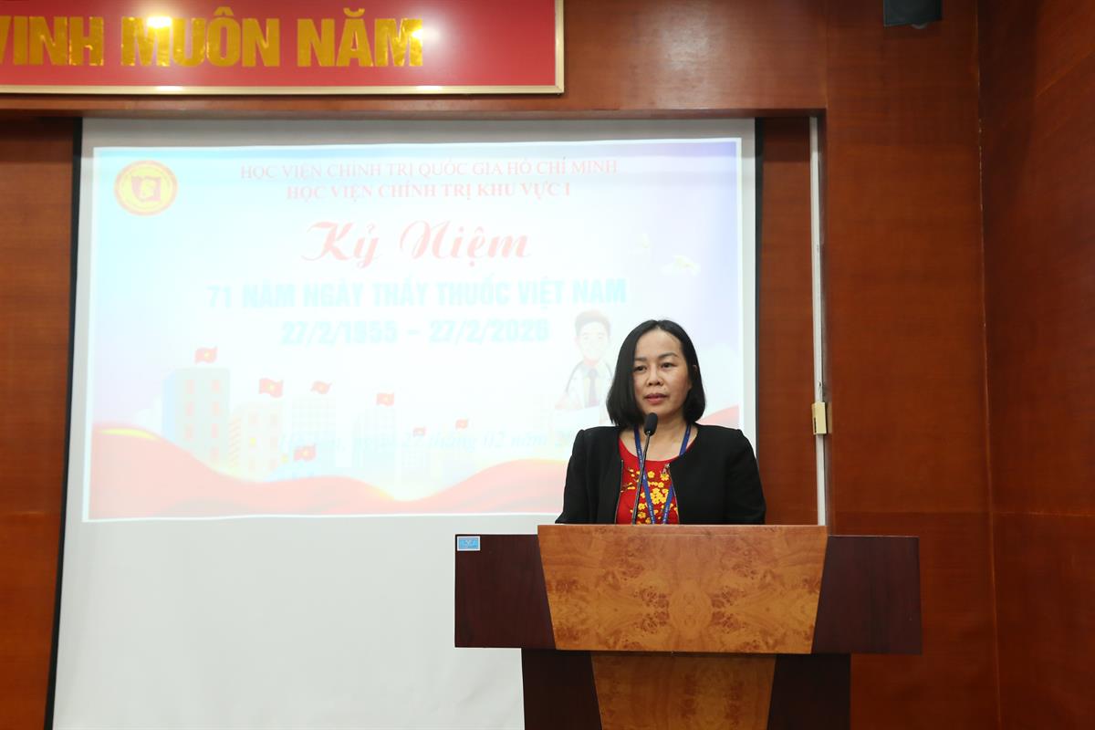 Phát biểu tại buổi gặp mặt, TS Vũ Văn Hậu, Phó Giám đốc Học viện, thay mặt lãnh đạo Học viện gửi lời chúc mừng tốt đẹp tới toàn thể cán bộ, viên chức làm công tác y tế, đồng thời ghi nhận và biểu dương những đóng góp của đội ngũ y tế đối với sự phát triển chung của Học viện trong thời gian qua. Đồng chí nhấn mạnh vai trò của công tác y tế cơ sở trong việc chăm sóc sức khỏe ban đầu, phòng chống dịch bệnh, bảo đảm y tế học đường và vệ sinh an toàn thực phẩm, qua đó góp phần nâng cao chất lượng đào tạo tại Học viện. Đồng chí mong muốn, trong thời gian tới, đội ngũ cán bộ y tế sẽ tiếp tục phát huy tinh thần trách nhiệm, chủ động, tận tụy và nêu cao tinh thần “phụng sự”, đáp ứng tốt hơn yêu cầu chăm sóc sức khỏe cho cán bộ và học viên tại Học viện.