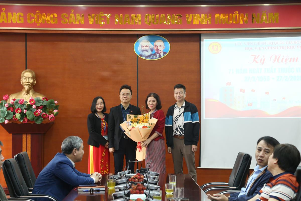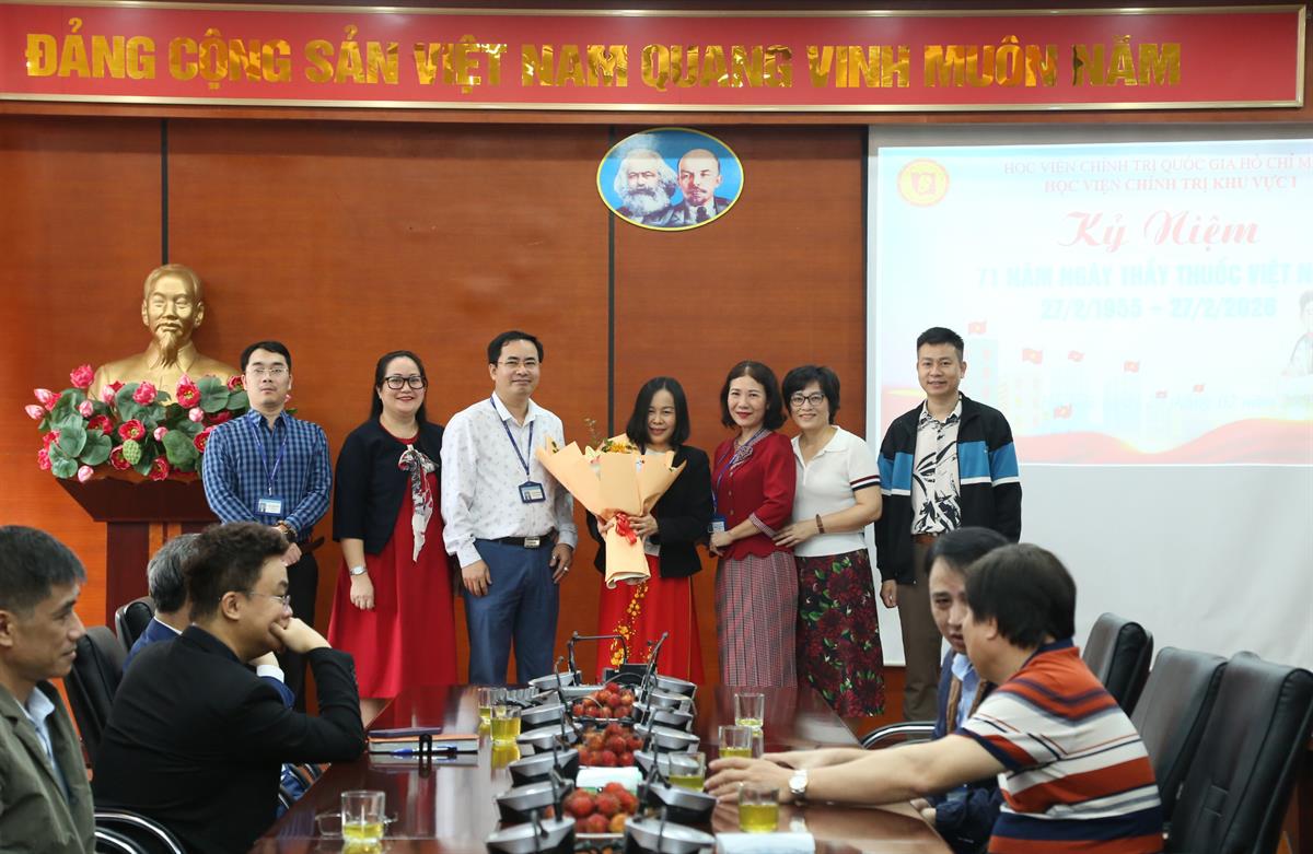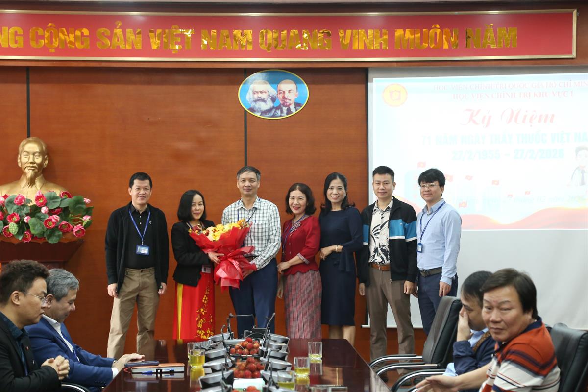 Tại buổi gặp mặt, đại diện lãnh đạo các đơn vị thuộc Học viện đã tặng hoa chúc mừng đội ngũ cán bộ y tế nhân Kỷ niệm 71 năm ngày Thầy thuốc Việt Nam (27/2/1955-27/2/2026).