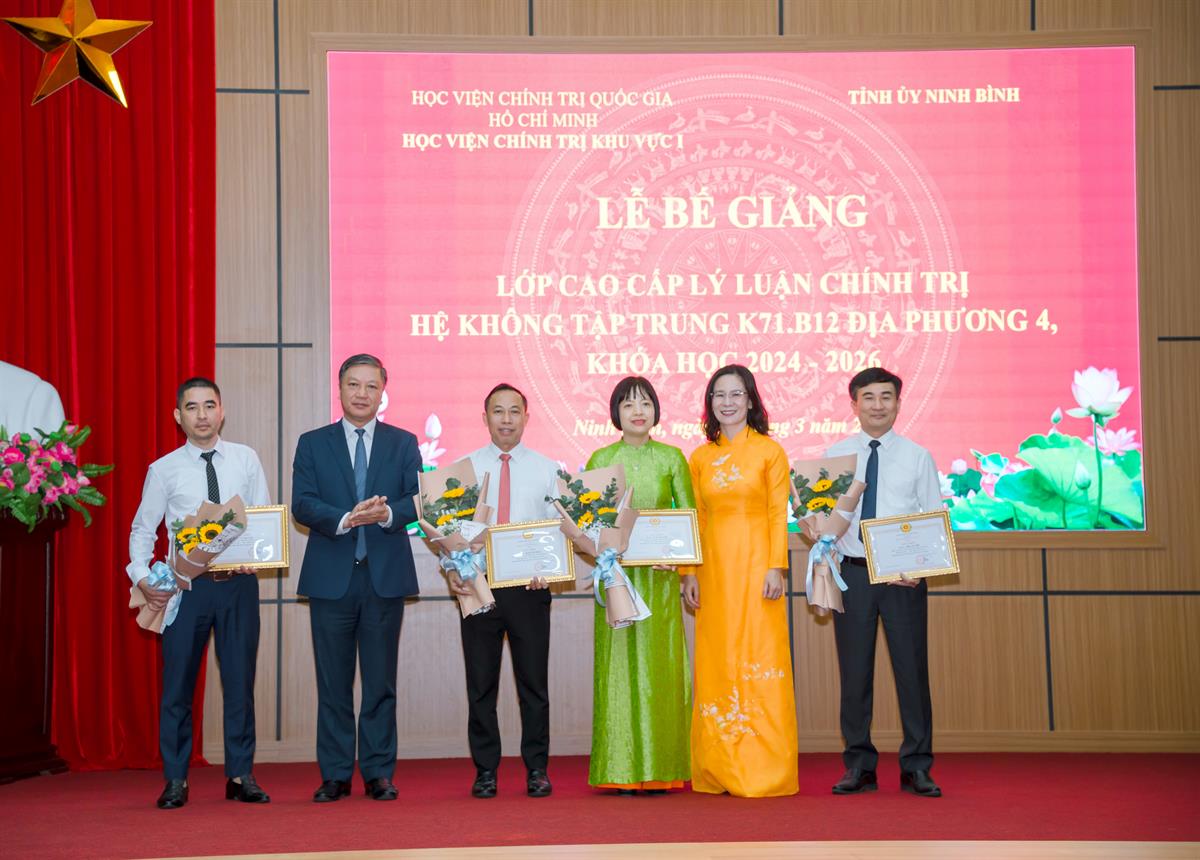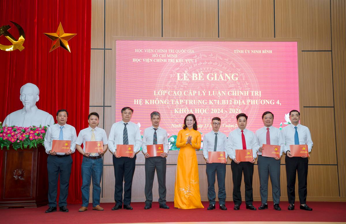 Phát biểu tại buổi lễ, đồng chí Đinh Việt Dũng, Ủy viên Ban Thường vụ Tỉnh ủy, Trưởng ban Tổ chức Tỉnh ủy Ninh Bình biểu dương, ghi nhận tinh thần học tập, rèn luyện và kết quả đạt được của các học viên. Đồng chí mong muốn trong thời gian tới, các thầy, cô giáo và Ban Giám đốc Học viện Chính trị khu vực I tiếp tục quan tâm, dành nhiều thời gian, tâm huyết hỗ trợ tỉnh Ninh Bình trong công tác đào tạo đội ngũ cán bộ nguồn, cán bộ lãnh đạo, quản lý.