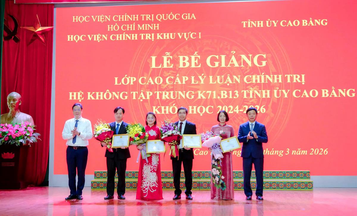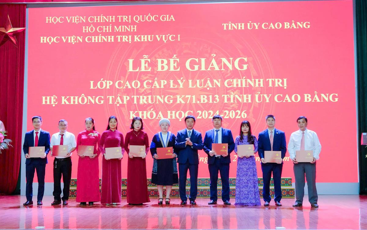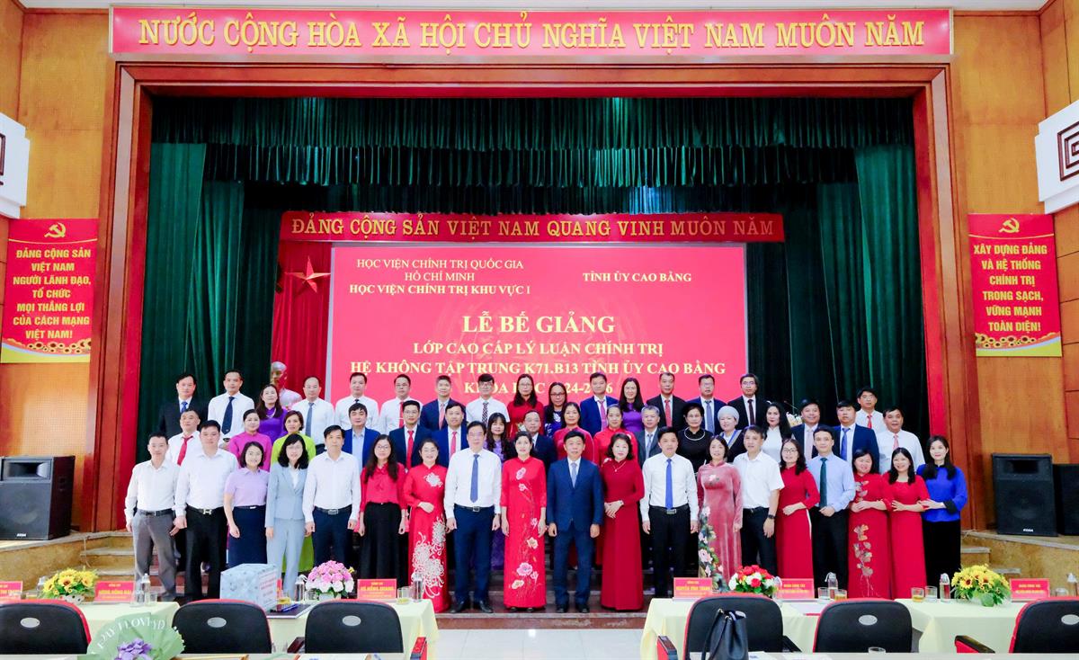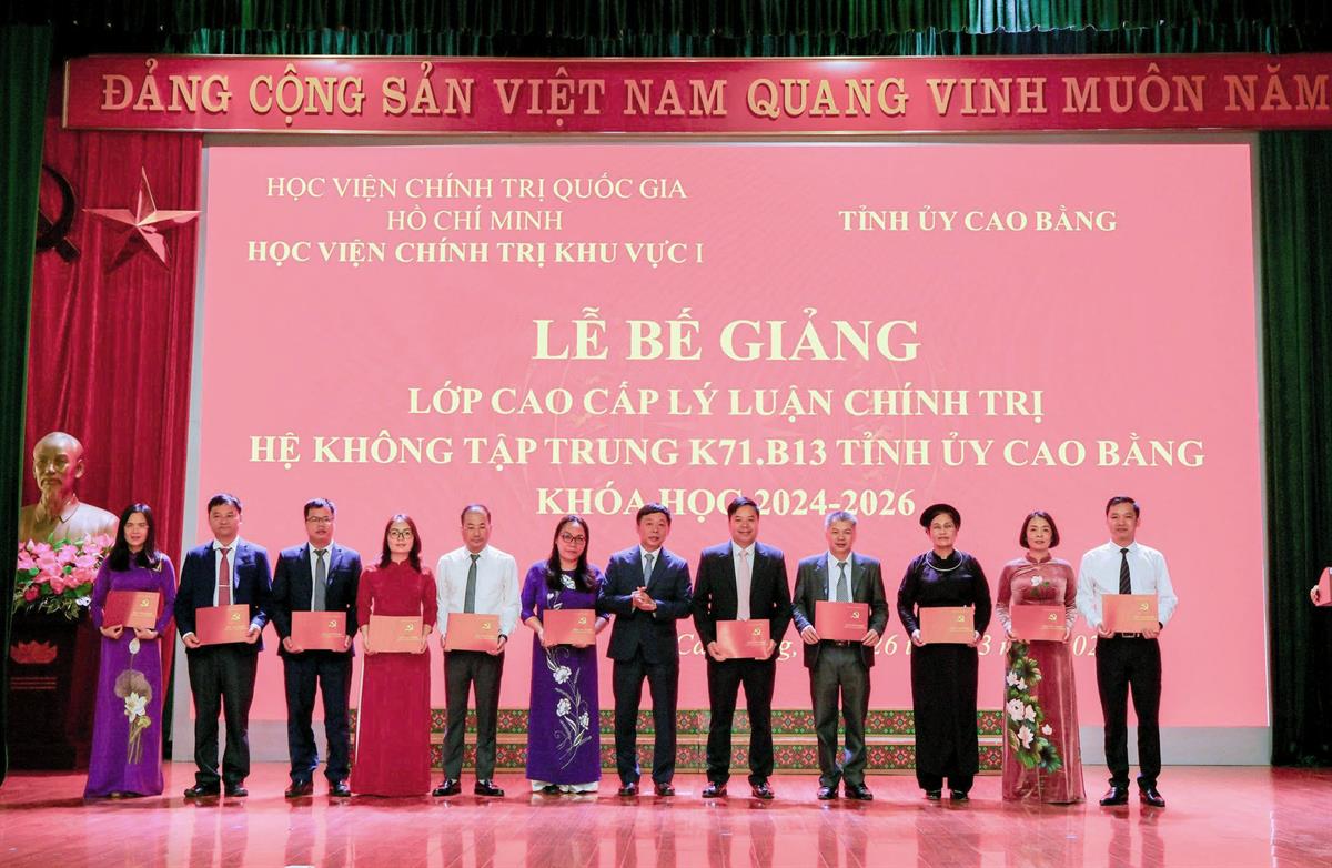 Phát biểu bế giảng khóa học, PGS,TS Nguyễn Vĩnh Thanh, Bí thư Đảng ủy, Giám đốc Học viện Chính trị khu vực I đã chúc mừng 41 học viên lớp CCLLCT hệ không tập trung K71.B13 Tỉnh ủy Cao Bằng đã hoàn thành chương trình khóa học. Thông qua khóa học, các học viên không chỉ được trang bị hệ thống tri thức nền tảng về chủ nghĩa Mác - Lênin, tư tưởng Hồ Chí Minh, đường lối của Đảng mà còn được cập nhật tư duy mới về khoa học lãnh đạo, quản lý gắn liền với thực tiễn. Đồng chí Giám đốc Học viện bày tỏ kỳ vọng mỗi học viên sẽ chủ động chuyển hóa kiến thức đã học thành phương pháp làm việc khoa học; không ngừng tu dưỡng đạo đức cách mạng, kiên định bản lĩnh chính trị để phụng sự tốt nhất cho mục tiêu chung của tổ chức. Kết thúc khóa học 2024-2026, Học viện đã trao Bằng tốt nghiệp cho 41 học viên, trong đó có  01 học viên đạt loại Giỏi, 39 học viên đạt loại Khá, và 01 học viên đạt Trung bình Khá; trao tặng Giấy khen Giám đốc Học viện Chính trị khu vực I cho 04 học viên đạt kết quả cao trong học tập và rèn luyện.