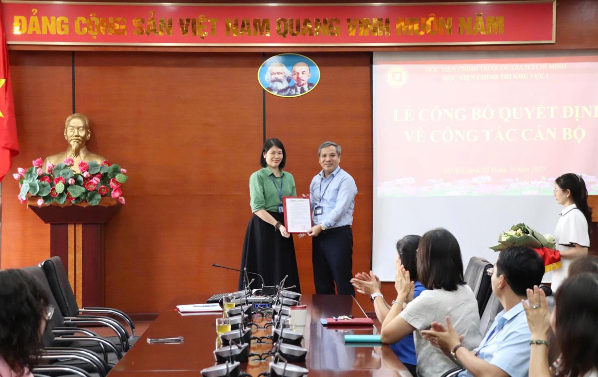 Chiều 03/10/2025, Học viện Chính trị khu vực I tổ chức Lễ công bố và trao Quyết định điều động, bổ nhiệm chức vụ Phó Trưởng khoa Chủ nghĩa xã hội khoa học đối với TS Vương Hồng Hà, Phó Trưởng khoa Kinh tế - Xã hội và Môi trường.
