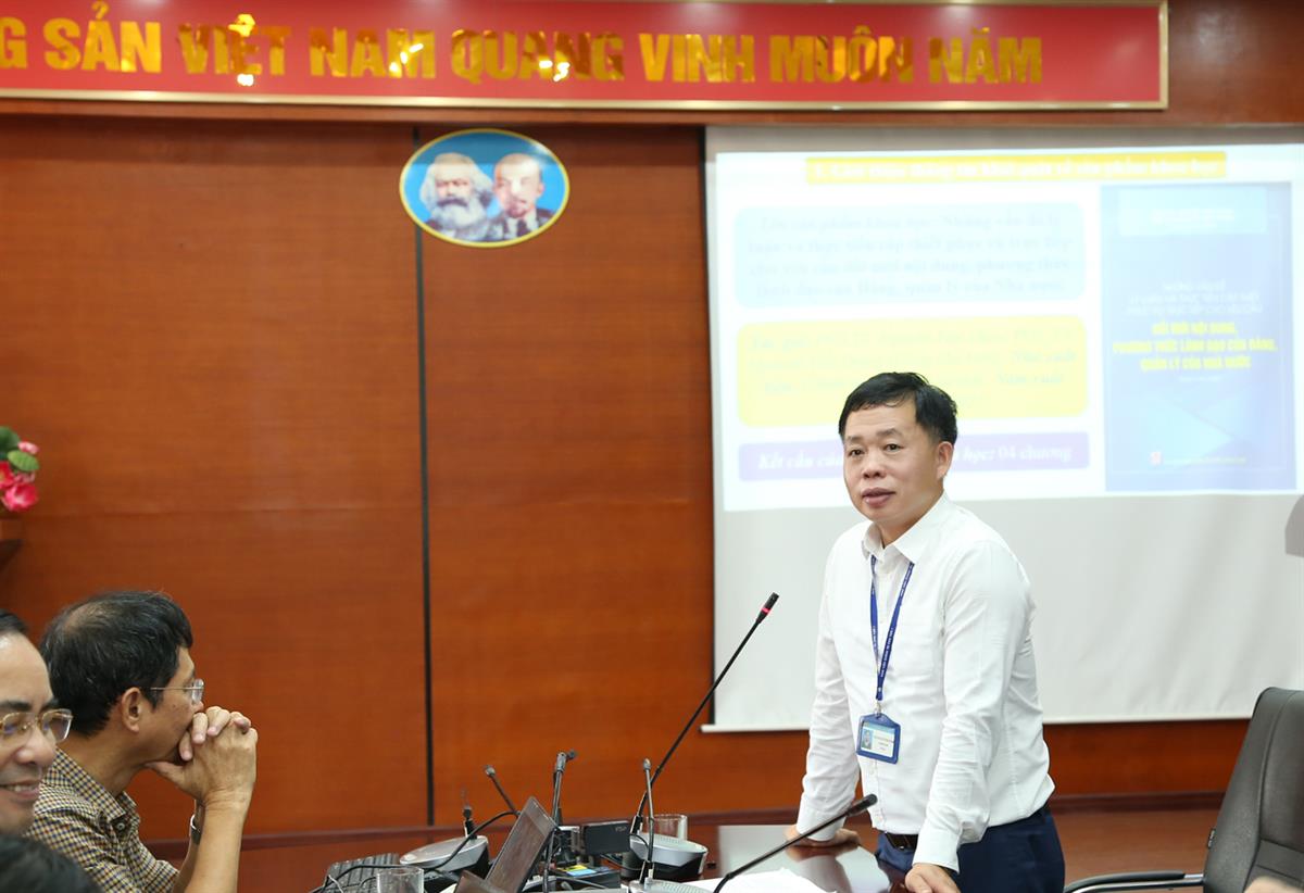 Sáng 24/10, Học viện Chính trị khu vực I tổ chức Giới thiệu sách cấp Học viện “Vai trò tiên phong của đội ngũ đảng viên trong giai cấp công nhân Việt Nam hiện nay" do PGS,TS Trần Thị Hương chủ biên, Nhà xuất bản Lý luận chính trị xuất bản năm 2023. PGS,TS Nguyễn Vĩnh Thanh, Bí thư Đảng ủy, Giám đốc Học chủ trì giới thiệu sách.