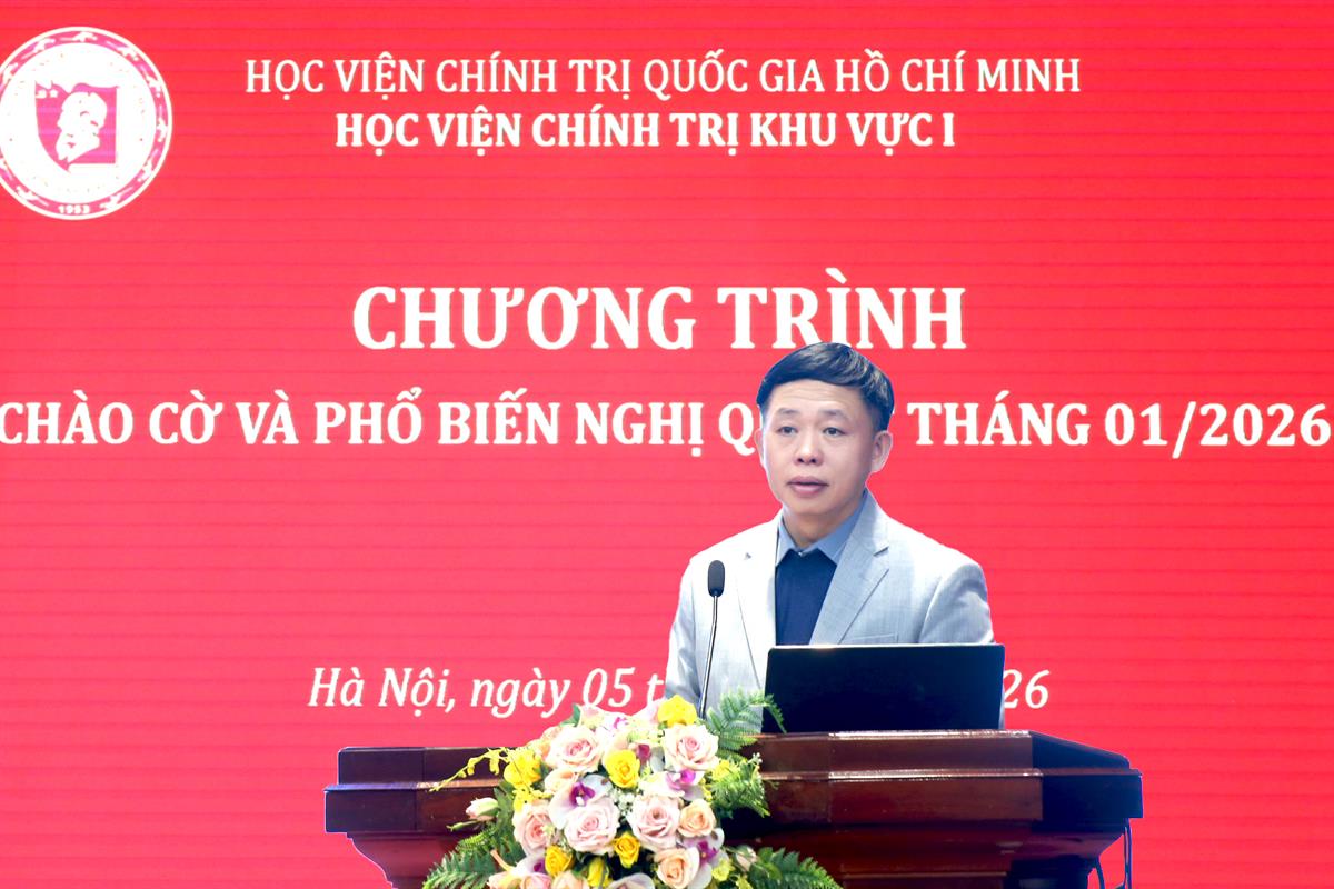 Sáng ngày 05/01/2026, Học viện Chính trị khu vực I tổ chức chương trình Chào cờ và phổ biến Nghị quyết tháng 01 năm 2026. Hội nghị do PGS,TS Nguyễn Vĩnh Thanh, Bí thư Đảng ủy, Giám đốc Học viện chủ trì.