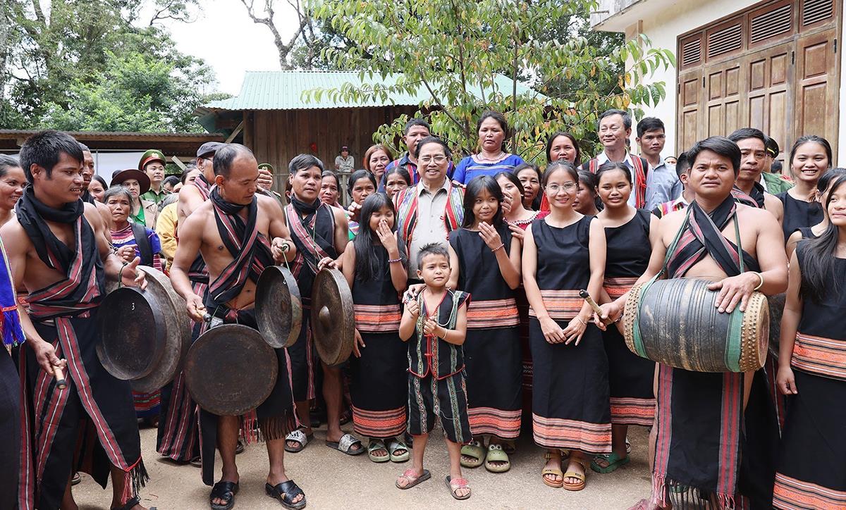 Ủy viên Bộ Chính trị, Thủ tướng Chính phủ Phạm Minh Chính với đồng bào dân tộc xã Măng Ri, huyện Tu Mơ Rông, tỉnh Kon Tum. Ảnh: TTXVN