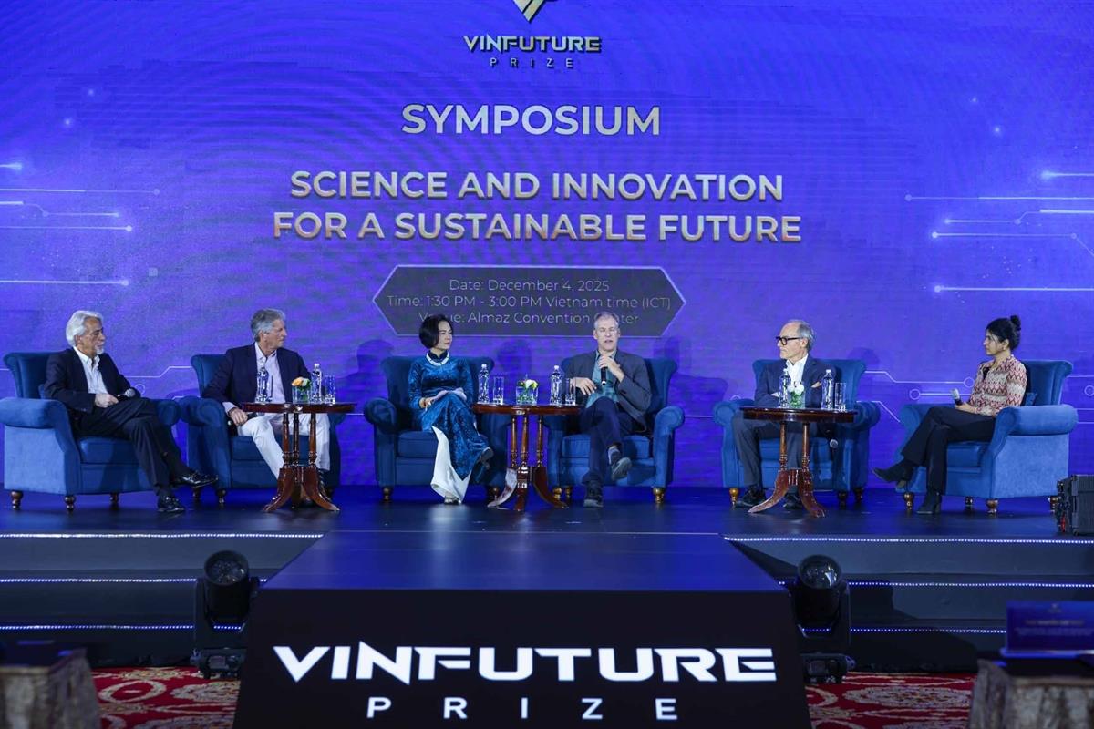 Trong khuôn khổ Tuần lễ Khoa học công nghệ VinFuture 2025, Quỹ VinFuture tổ chức chương trình toạ đàm “Khoa học và đổi mới sáng tạo vì tương lai bền vững”_Ảnh: TTXVN